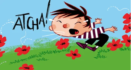 La rhinite allergique se manifeste à tout âge par la survenue régulière, en dehors d’épisodes de rhume ou de grippe, d’éternuements en salve, d’une congestion ou obstruction nasale et d’un écoulement nasal appelé rhinorrhée, accompagnés par un prurit ou grattage (au niveau des yeux, de la bouche ou du nez).